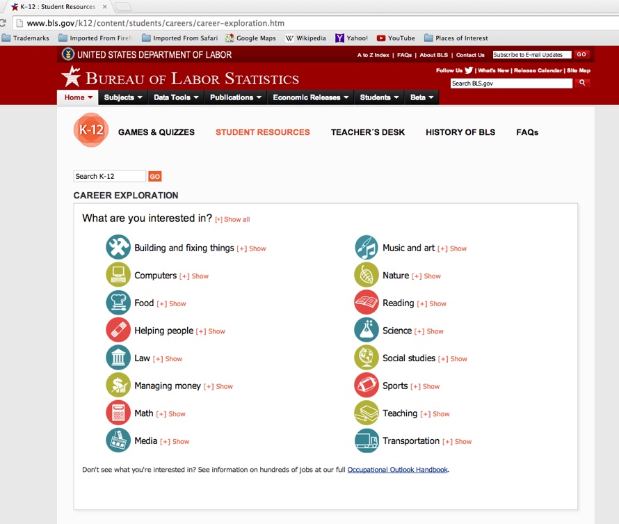 You can filter your search according to pay, projected number of new jobs, entry-level education, projected growth rate, and on-the-job training.