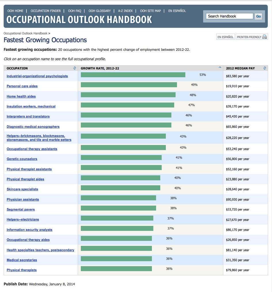 fastest growing occupations (percentage change)
